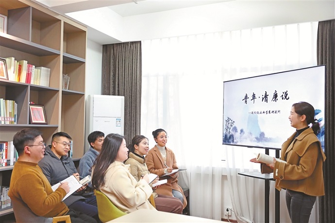 福建省南平市建陽區(qū)紀委監(jiān)委加強對年輕干部的教育監(jiān)督管理,根據(jù)年輕干部特點,選取相關(guān)違紀違法典型案例進行剖析,引導(dǎo)年輕干部引以為戒,自覺筑牢廉潔防線。圖為該區(qū)紀委監(jiān)委年輕干部在“青年·清廉說”學(xué)習(xí)沙龍上交流心得體會。黃毓婕 攝