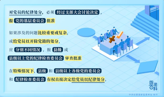 對黨員的紀律處分,必須經(jīng)過支部大會討論決定,報黨的基層委員會批準(zhǔn);