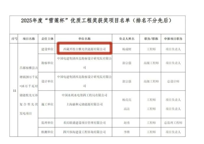 8月7日,西藏自治區(qū)住房和城鄉(xiāng)建設(shè)廳公布2025年度“雪蓮杯”優(yōu)質(zhì)工程獲獎(jiǎng)項(xiàng)目名單,由西藏開(kāi)投吉雅光伏公司投資建設(shè)的昌都察雅縣吉塘鎮(zhèn)20萬(wàn)千瓦+16萬(wàn)千瓦時(shí)儲(chǔ)能牧光互補(bǔ)復(fù)合型光伏發(fā)電項(xiàng)目榮獲該獎(jiǎng)項(xiàng)。