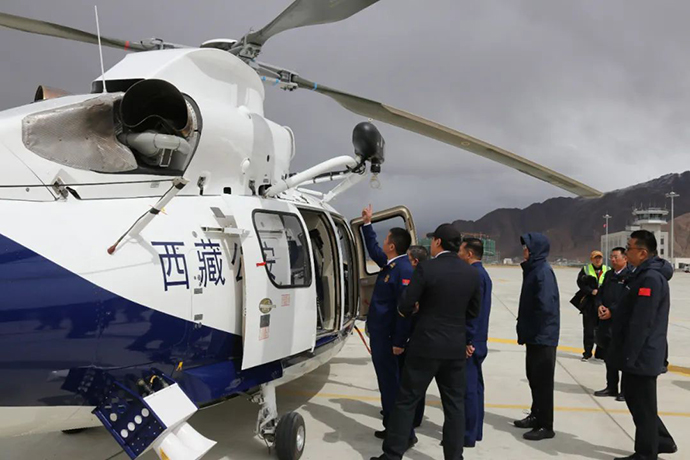 祁騰武指出,西藏各類自然災(zāi)害多發(fā)頻發(fā),消防應(yīng)急救援任務(wù)繁重,要堅決貫徹落實黨中央和區(qū)黨委政府關(guān)于消防救援和通航產(chǎn)業(yè)發(fā)展的決策部署,堅持人民至上、生命至上,聚焦穩(wěn)定、發(fā)展、生態(tài)、強邊“四件大事”,提高政治站位,立足職能定位,全力服務(wù)保障我區(qū)全任務(wù)、全地域、全要素應(yīng)急救援任務(wù)開展。一是要確保安全。消防應(yīng)急救援的專業(yè)性很強、危險系數(shù)也很高,要樹牢安全發(fā)展理念,增強紅線意識,堅持底線思維,落實好安全生產(chǎn)責任制,強化設(shè)備安全性能測試,常態(tài)化開展融合訓(xùn)練,確保救援裝備安全運行。二是要深化合作。要立足航空消防救援方向,加強與自治區(qū)消防救援總隊、設(shè)備生產(chǎn)制造企業(yè)、科研機構(gòu)的深度合作,統(tǒng)籌資源力量,創(chuàng)新工作模式,做好經(jīng)驗總結(jié)推廣,力爭把不斷涌現(xiàn)的應(yīng)急救援新技術(shù)、新裝備運用到全區(qū)應(yīng)急救援各領(lǐng)域。三是要加快落地。AC312E消防救援型直升機的引進使用,區(qū)黨委政府高度關(guān)注,各族群眾翹首以盼,合作各方要積極對接、共同努力,科學(xué)謀劃預(yù)算編報、需求論證、裝備采購、國家航空器報備各項工作,確保盡早交付運行、盡早發(fā)揮效能,切實為維護全區(qū)各族人民群眾生命財產(chǎn)安全和經(jīng)濟社會高質(zhì)量發(fā)展保駕護航。