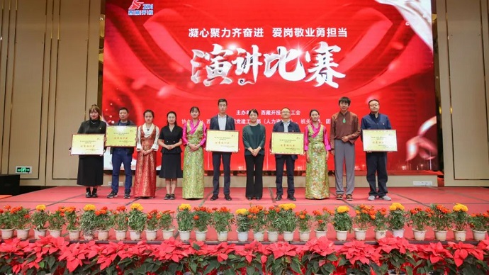 值此中國共產(chǎn)黨成立102周年和集團(tuán)公司成立十周年之際,為扎實(shí)推進(jìn)學(xué)習(xí)貫徹習(xí)近平新時(shí)代中國特色社會(huì)主義思想主題教育走深走實(shí),7月13日,由西藏開發(fā)投資集團(tuán)有限公司工會(huì)主辦,黨建工作部(人力資源部)、機(jī)關(guān)黨委、團(tuán)委、婦委會(huì)聯(lián)合承辦的“凝心聚力齊奮進(jìn) 愛崗敬業(yè)勇?lián)?dāng)”主題演講比賽在拉薩邦錦花園酒店成功舉辦。區(qū)黨委宣傳部干部處處長、一級調(diào)研員楊啟宏,區(qū)政府國資委機(jī)關(guān)黨委專職副書記卓瑪,區(qū)總工會(huì)宣教部四級調(diào)研員王政全等領(lǐng)導(dǎo),集團(tuán)公司黨委副書記、副董事長、總經(jīng)理劉剛,集團(tuán)公司黨委委員、董事、總會(huì)計(jì)師陳焱罡,集團(tuán)公司黨委委員、區(qū)紀(jì)委監(jiān)委駐集團(tuán)公司紀(jì)檢監(jiān)察組組長羅布次仁,集團(tuán)公司黨委委員、副總經(jīng)理、工會(huì)主席、機(jī)關(guān)黨委書記溫勇出席活動(dòng)并為獲獎(jiǎng)選手頒獎(jiǎng)。