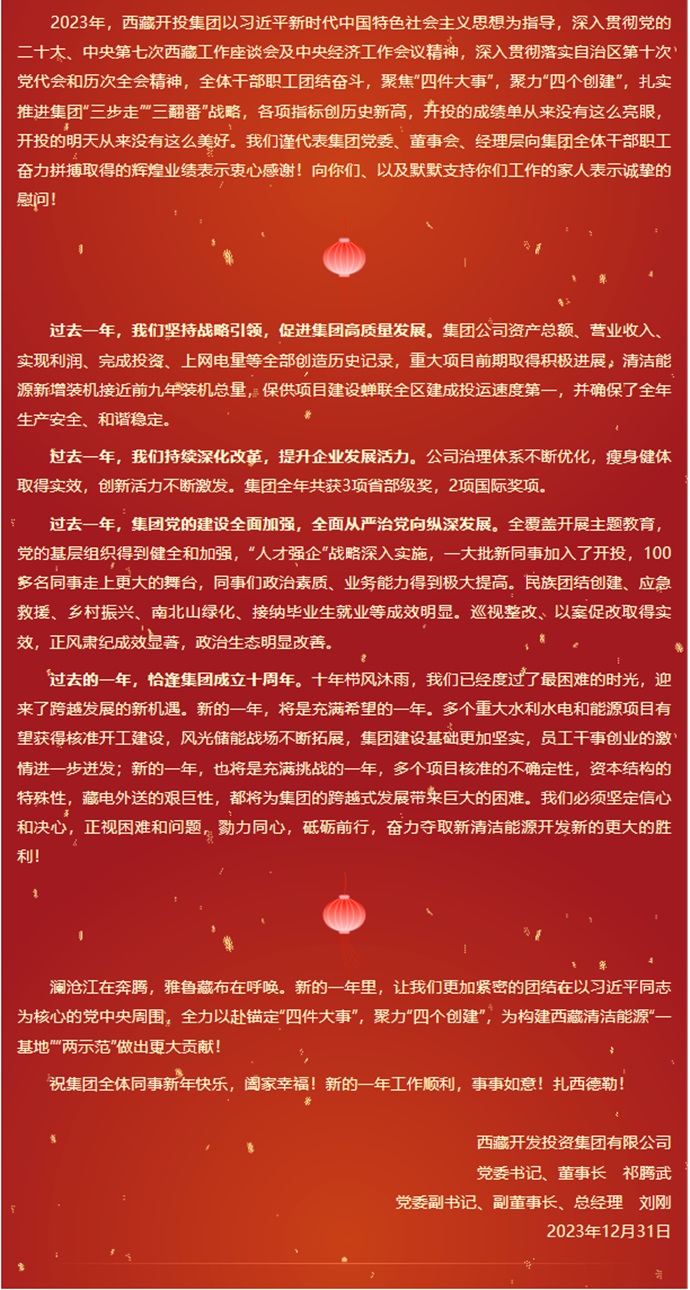西藏開投集團新年賀詞