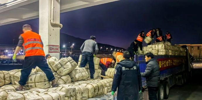 1月9日20點,拉薩貢嘎國際機(jī)場貨站內(nèi)燈火通明,西藏開投集團(tuán)20多名工作人員正在緊急卸裝救援物資,一件件棉衣棉被下了飛機(jī)立即裝車,準(zhǔn)備運(yùn)往災(zāi)區(qū)。