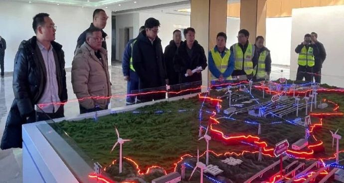 肖長(zhǎng)歌一行在色尼區(qū)曲果嘎姆風(fēng)電項(xiàng)目調(diào)研現(xiàn)場(chǎng)。