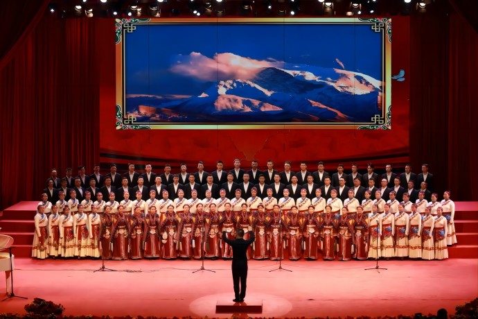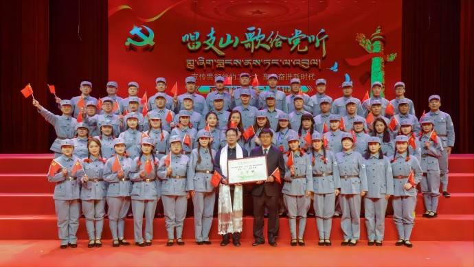“朋友!你到過黃河嗎?你渡過黃河嗎?你還記得河上的船夫拼著性命和驚濤駭浪搏戰(zhàn)的情景嗎?如果你已經(jīng)忘掉的話,那么你聽吧!”由58人組成的西藏開投集團(tuán)參賽隊(duì)以一曲《保衛(wèi)黃河》,唱響了黨領(lǐng)導(dǎo)全國人民走過的風(fēng)雨歷程,唱出了戰(zhàn)勝敵人、奪取勝利的激情。