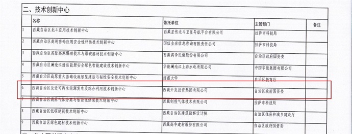 集團(tuán)公司申報的“西藏自治區(qū)先進(jìn)可再生能源發(fā)電及綜合利用技術(shù)創(chuàng)新中心”成功批準(zhǔn)籌建