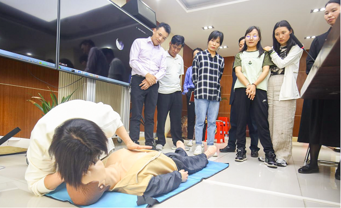 培訓(xùn)過(guò)程中,導(dǎo)師通過(guò)示范指導(dǎo)、疑問(wèn)解答、模擬訓(xùn)練等方式,著重演示了海姆立克急救法、心肺復(fù)蘇操作、防震減災(zāi)地震自救以及創(chuàng)傷救護(hù)等現(xiàn)場(chǎng)救護(hù)操作方法,著重強(qiáng)調(diào)了應(yīng)急救護(hù)“黃金四分鐘”及心肺復(fù)蘇胸外按壓的至關(guān)重要性,全體參訓(xùn)人員在導(dǎo)師的指導(dǎo)下對(duì)所學(xué)項(xiàng)目進(jìn)行模擬練習(xí),對(duì)不規(guī)范的流程與動(dòng)作,進(jìn)行糾正,確保參訓(xùn)人員真正掌握應(yīng)急救護(hù)技術(shù)。