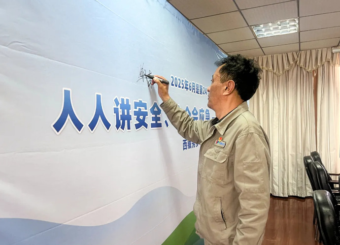 6月4日,西藏開投八宿光伏電站組織召開“人人講安全、個個會應急——查找身邊安全隱患”安全生產(chǎn)月活動啟動會,會議宣貫了八宿光伏電站2025年“安全生產(chǎn)月”活動方案,并對公司“安全生產(chǎn)月”活動作了詳細安排部署。會后,電站員工紛紛在“安全生產(chǎn)月”主題橫幅上鄭重簽名,表達對安全生產(chǎn)的莊嚴承諾。