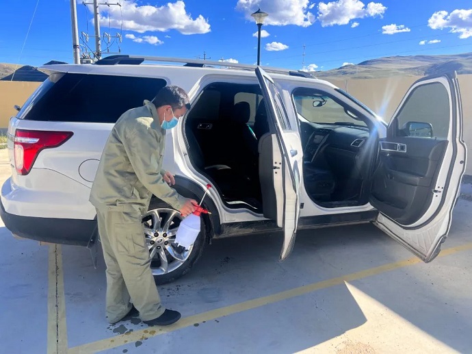 (車(chē)輛消毒 王呈云攝)