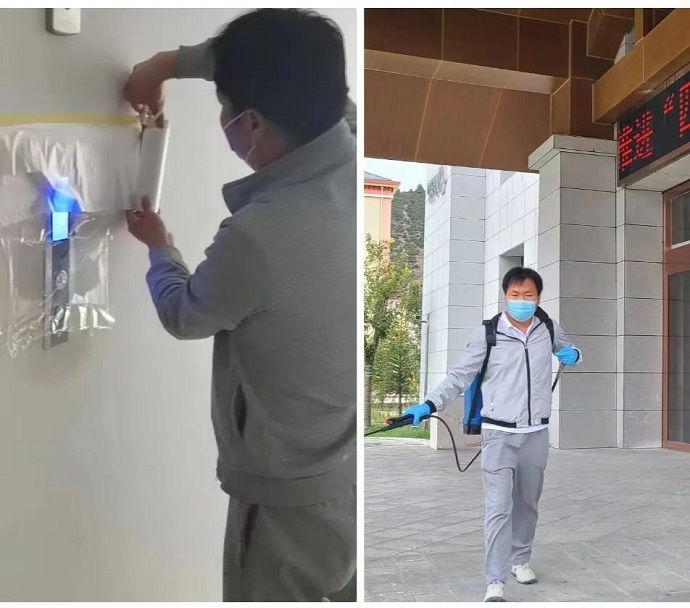 此次疫情發(fā)展伊始,酒店周邊已多處發(fā)生感染病例,距最近的高風(fēng)險(xiǎn)區(qū)域不到100米。孫海崗帶領(lǐng)部門(mén)人員,沖在“疫”線(xiàn),堅(jiān)持每天對(duì)酒店各個(gè)區(qū)域進(jìn)行2次消殺,不留死角。由于酒店占地面積大,單體建筑分布較廣,完成一次全面徹底消殺用時(shí)需要2小時(shí)以上。孫海崗深知消殺工作的重要性,在工作過(guò)程中任勞任怨,埋頭苦干。