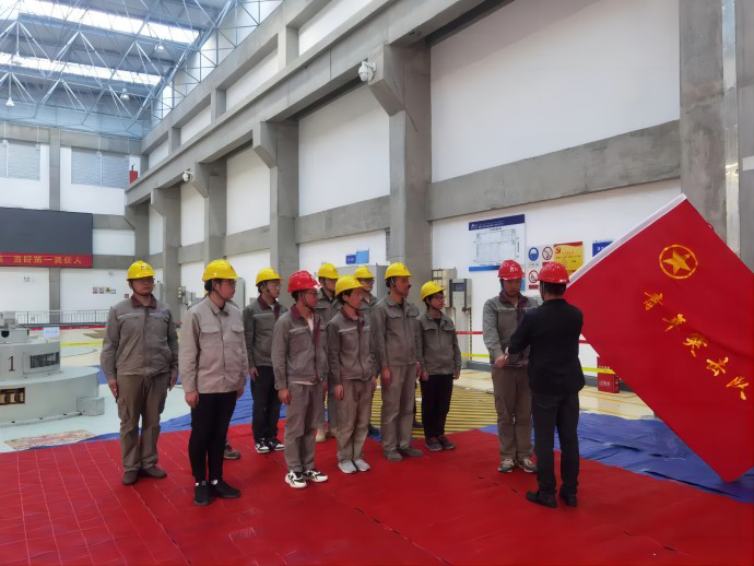 會議全面部署各項檢修任務(wù),動員現(xiàn)場參會人員統(tǒng)一思想、凝聚共識、明確任務(wù)、落實責(zé)任,全力以赴打好本次檢修攻堅戰(zhàn)。動員結(jié)束后,覺巴水電廠為“青年突擊隊”舉行授旗儀式。