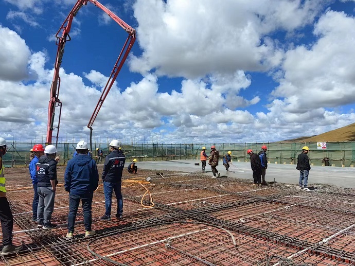 9月28日,隨著生產(chǎn)樓屋面板最后一平方米混凝土澆筑完成,金上昌都貢覺拉妥一期700MW光伏項目生產(chǎn)樓順利封頂,項目參建單位辛苦勞作成果終于可以交上第一份答卷。