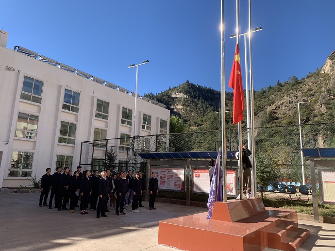 為深入學習貫徹黨的二十大精神,深刻學習領(lǐng)會習近平新時代中國特色社會主義思想,引領(lǐng)廣大干部職工賡續(xù)紅色基因,厚植愛國主義情懷。10月1日上午十點,果多水電公司全體干部職工整齊列隊、精神抖擻,舉行莊嚴的“喜迎國慶”升國旗儀式,熱烈慶祝祖國華誕74周年。