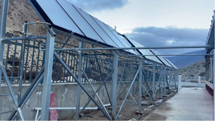 日喀則市定日縣曲當鄉(xiāng)德吉村、優(yōu)帕村、嚴曲村位于珠穆朗瑪峰自然保護區(qū)核心區(qū),均為定日縣偏遠邊境鄉(xiāng)村。項目供暖總面積為593.39m2,包括太陽能集熱器系統(tǒng)、輔助熱源(空氣源熱泵),儲熱系統(tǒng)、末端設施,光伏發(fā)電系統(tǒng),建筑節(jié)能改造等內容。在日喀則市發(fā)改委的領導下,南亞公司(西藏開投下屬二級公司)以人為本、科學管理、精心組織,克服設備運輸艱難、人員組織困難、施工機械短缺、項目工期緊張等種種困難,如期實現(xiàn)了項目投產。同時,為評估和提升項目效能,配套了PLC自控柜,對供暖數(shù)據(jù)進行遠程收集及數(shù)據(jù)分析。在本項目運行一個采暖期后,將對項目的規(guī)模效益、財務效益、綜合效益進行綜合評價,并對清潔能源供暖方式替代傳統(tǒng)燃料的減碳效果進行科學分析,確保形成村居供暖工程可靠性好、性價比高、適宜推廣的決策方案,為全面復制推廣實施全區(qū)農牧區(qū)清潔供暖供熱項目做出貢獻。