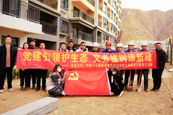 3月28日,置業(yè)公司黨支部聯(lián)合中鐵十七局電氣化公司黨支部組織雙方黨員干部及職工代表在能源基地開展 “黨建引領(lǐng)護生態(tài),義務(wù)植樹添新綠”主題黨日活動,旨在引導(dǎo)公司全體職工用實際行動加強綠色環(huán)保意識,共同建設(shè)綠色、低碳、生態(tài)、文明的美麗家園。