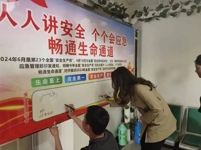 會議以《深入學習貫徹習近平關于應急管理的重要論述》為重點開展集中宣講和專題研討,宣貫了《西藏自治區(qū)安全生產條例》等相關文件精神,觀看了“安全生產月”主題宣傳片、《安全生產 責任在肩》警示教育片,切實提升干部職工安全責任意識和應急避險能力。會議結束后,舉行了主題展板簽名儀式,動員全體員工履職擔當,自覺把安全生產工作記在心上、抓在手上、扛在肩上、落在實處,與會人員在主題展板前簽字承諾。
