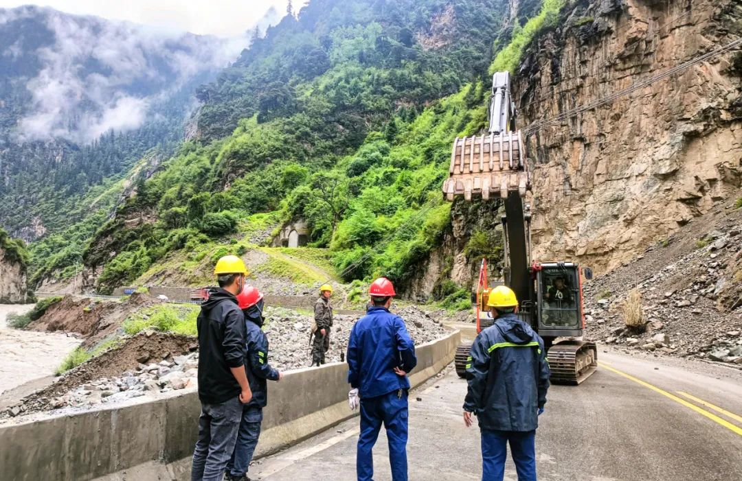 面對這一緊急情況,金橋水電站迅速啟動防洪度汛應急預案,在雨中開展緊急修復工作?,F(xiàn)場工作人員身著雨衣,腳踩泥濘,專業(yè)技術人員對存在問題的廠壩線進行評估,制定出修復方案,工程技術人員也對隱患部位進行勘察和評估,全力應對輸入桿的扶正、填土、夯實等一系列操作。雨中各種工程設備轟鳴作響,搶修人員們緊密配合,爭分奪秒地推進修復工作。