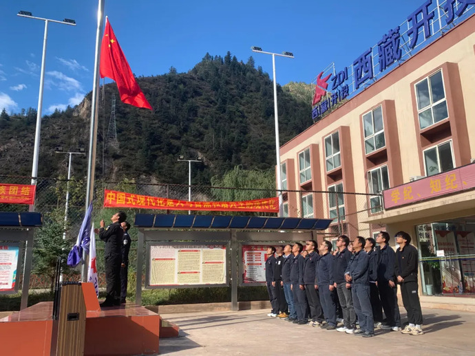 10月1日,果多水電公司全體干部職工在辦公樓前整齊列隊(duì)。隨著莊嚴(yán)肅穆的音樂聲響起,升旗儀式正式開始,鮮艷的五星紅旗冉冉升起,迎風(fēng)飄揚(yáng),全體干部職工面向國旗行注目禮,共同表達(dá)對祖國的忠誠和熱愛。