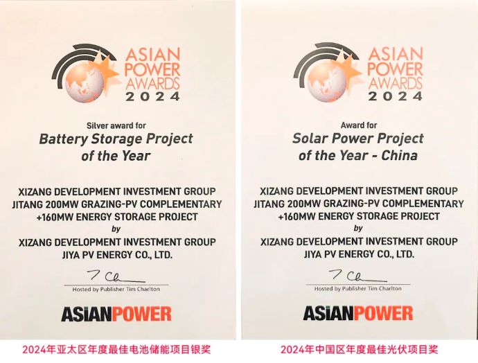 10月22日,2024年度亞洲能源大獎(jiǎng)(2024 Asian Power Awards)獲獎(jiǎng)名單在新加坡正式揭曉,由西藏開(kāi)投吉雅光伏公司主導(dǎo)建設(shè)并運(yùn)營(yíng)的吉塘200MW+160MWh儲(chǔ)能牧光互補(bǔ)復(fù)合型光伏項(xiàng)目榮膺“2024年亞太區(qū)年度最佳電池儲(chǔ)能項(xiàng)目銀獎(jiǎng)”和“2024年中國(guó)區(qū)年度最佳光伏項(xiàng)目獎(jiǎng)”兩項(xiàng)大獎(jiǎng)。