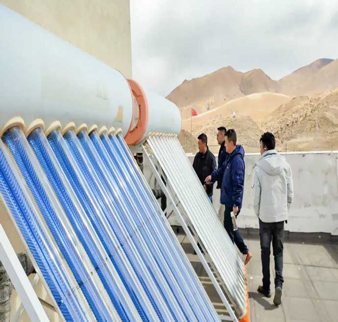 八宿光伏電站工作人員檢查廠區(qū)設(shè)備。