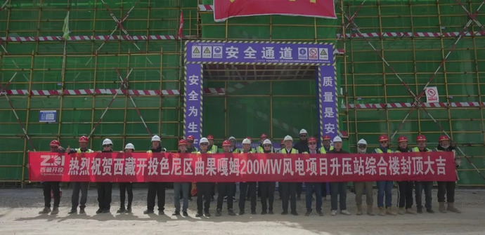 伴隨最后一方混凝土緩緩入倉,西藏自治區(qū)在建的最大風電項目——西藏開投色尼區(qū)曲果嘎姆200MW風電項目升壓站綜合樓順利封頂。