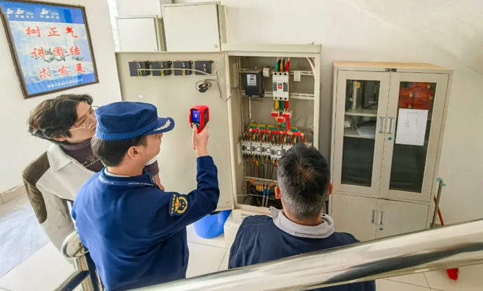 檢查現(xiàn)場:配電箱電氣線路溫度測試。