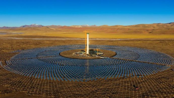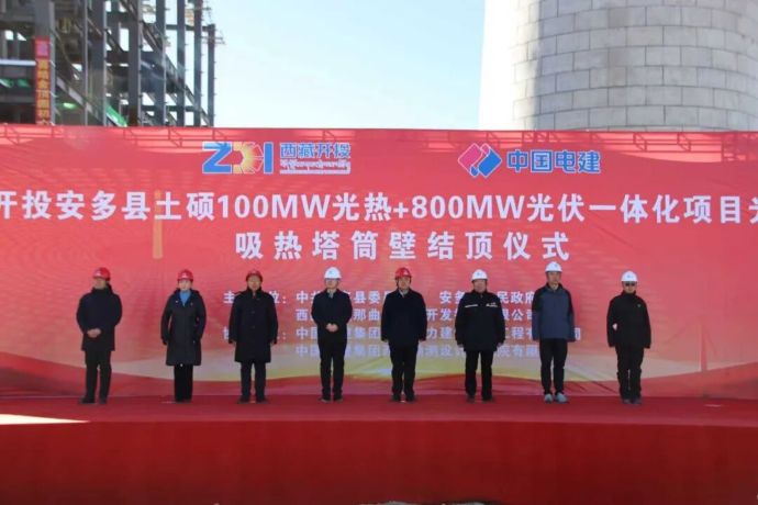 15日上午,西藏開投集團投資建設(shè)的全球海拔最高、西藏首個塔式光熱電站——西藏開投安多土碩100MW光熱+800MW光伏一體化項目吸熱塔順利結(jié)頂。吸熱塔從破土動工到主體完工僅用233天,創(chuàng)下同期同類型項目結(jié)頂最快紀錄。