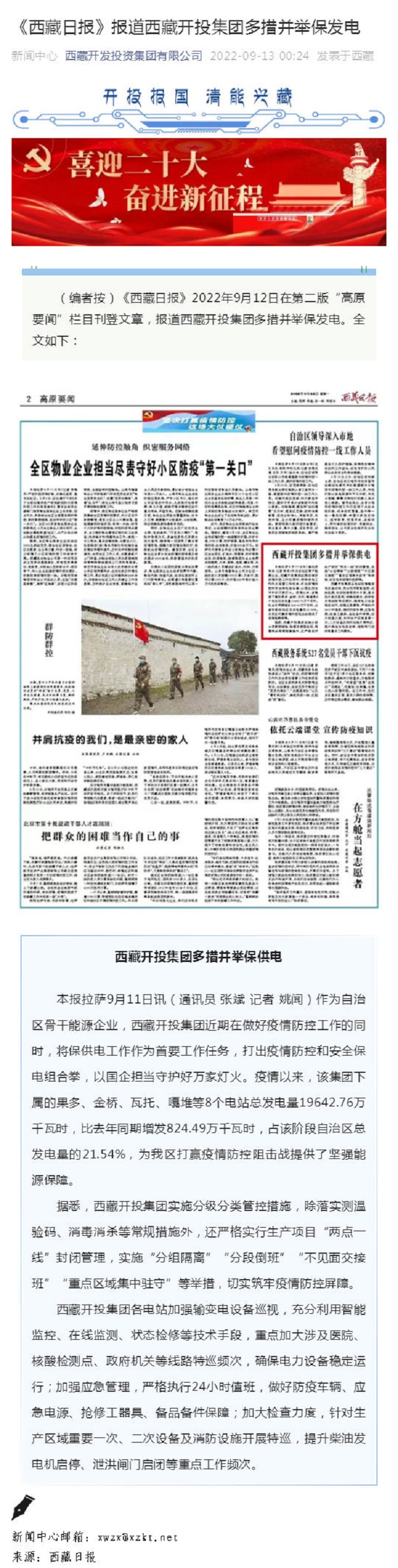 【西藏日?qǐng)?bào)】報(bào)道西藏開(kāi)投集團(tuán)多措并舉保發(fā)電