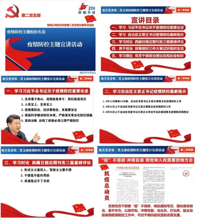 為貫徹落實區(qū)黨委和區(qū)政府國資委黨委近期工作部署、集團公司黨委具體工作要求,結合疫情防控工作實際,9月6日下午,中共西藏開發(fā)投資集團有限公司機關第二支部委員會組織全體黨員開展疫情防控主題黨日宣講活動。受疫情影響,活動以網(wǎng)絡視頻形式召開。集團公司黨委委員、副總經(jīng)理、工會主席、機關黨委書記溫勇同志以普通黨員身份參加活動。