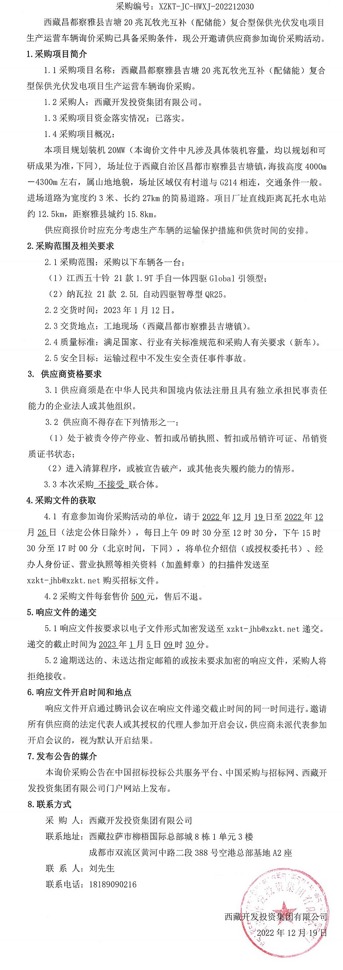 光伏發(fā)電項(xiàng)目生產(chǎn)運(yùn)營(yíng)車輛詢價(jià)采購(gòu)公告