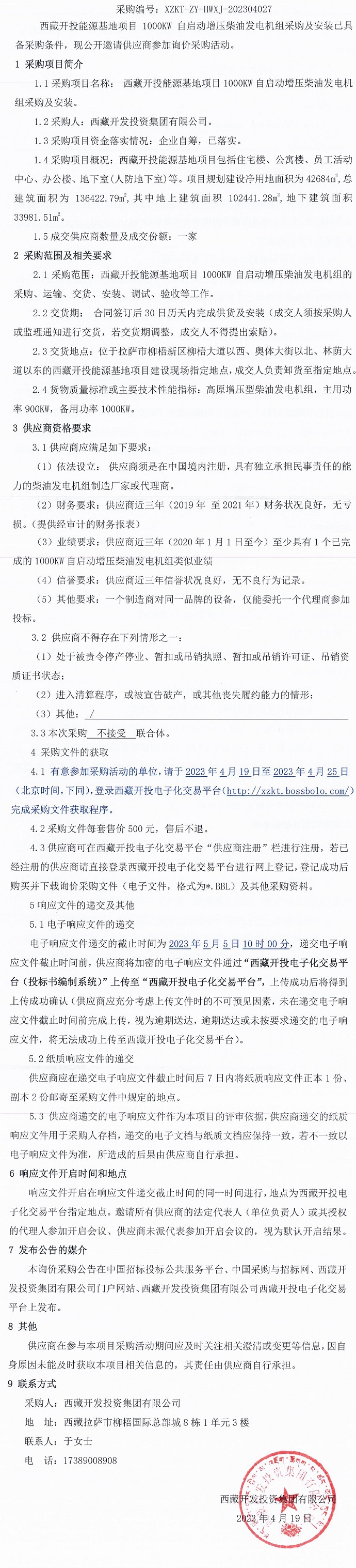 西藏開投能源基地項目1000KW自啟動增壓柴油