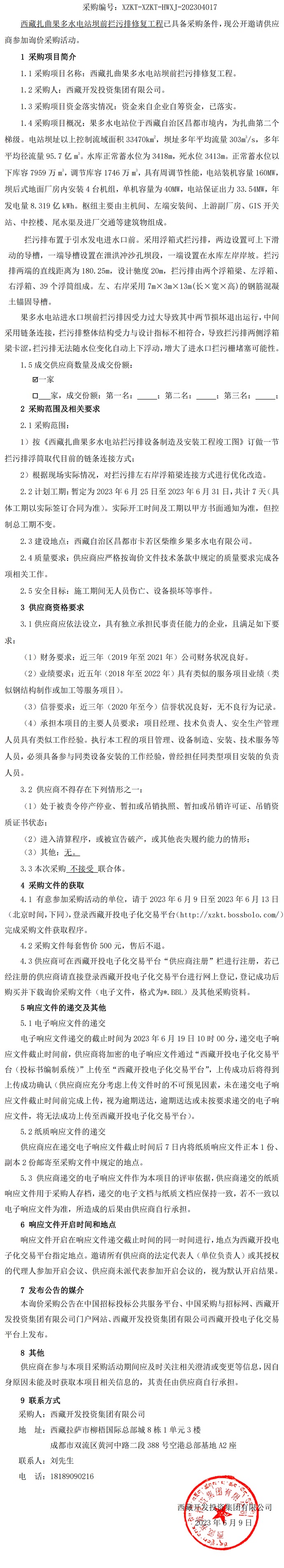西藏扎曲果多水電站壩前攔污排修復(fù)工程詢價(jià)采購公告