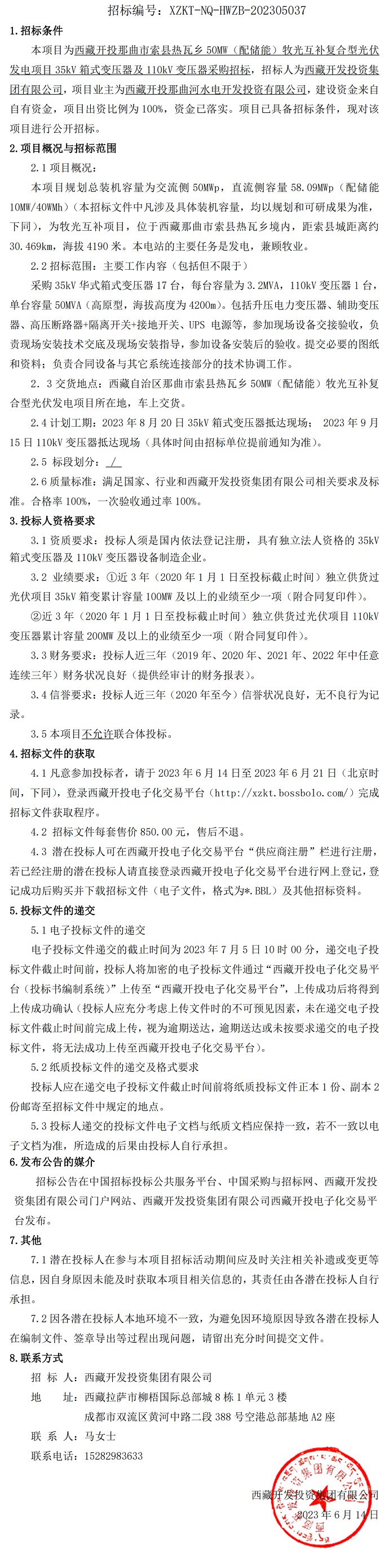 35kV箱式變壓器及110kV變壓器采購(gòu)招標(biāo)公告