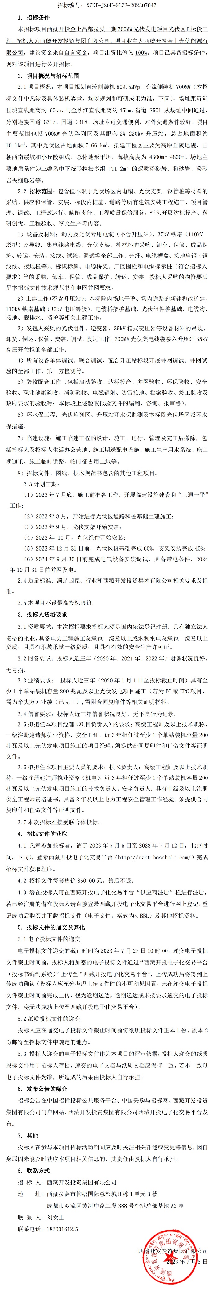 光伏區(qū)B標段工程招標公告