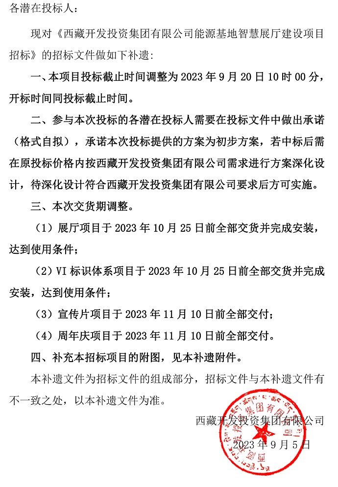 西藏開發(fā)投資集團有限公司能源基地智慧展廳建設(shè)項目招標(biāo)