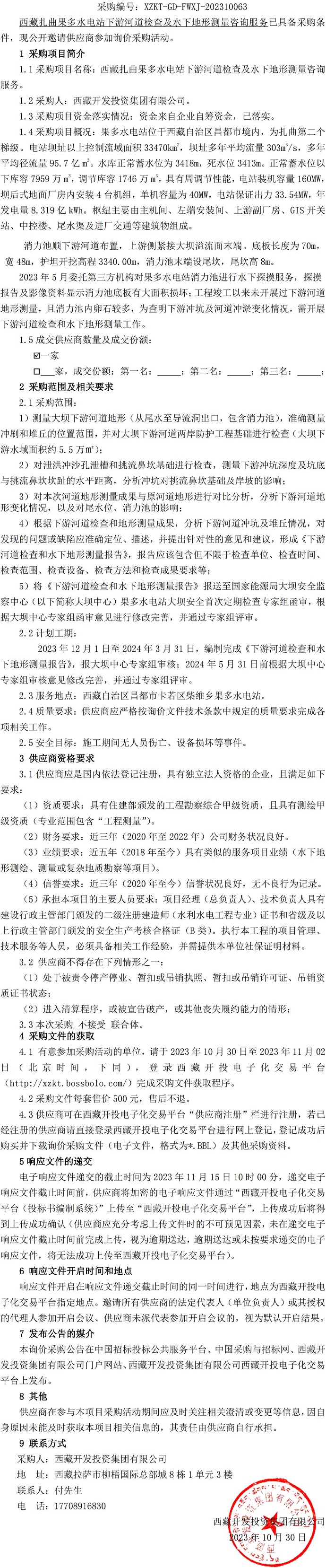 西藏扎曲果多水電站下游河道檢查及水下地形測量咨詢服務(wù)詢價采購公告