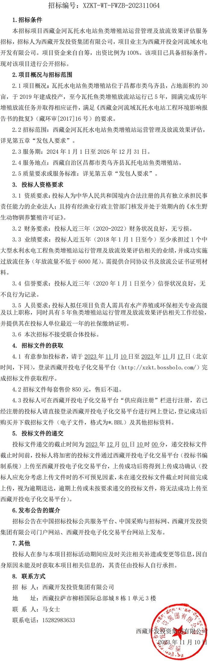 西藏金河瓦托水電站魚類增殖站運(yùn)營(yíng)管理及放流效果評(píng)估服務(wù)招標(biāo)公告