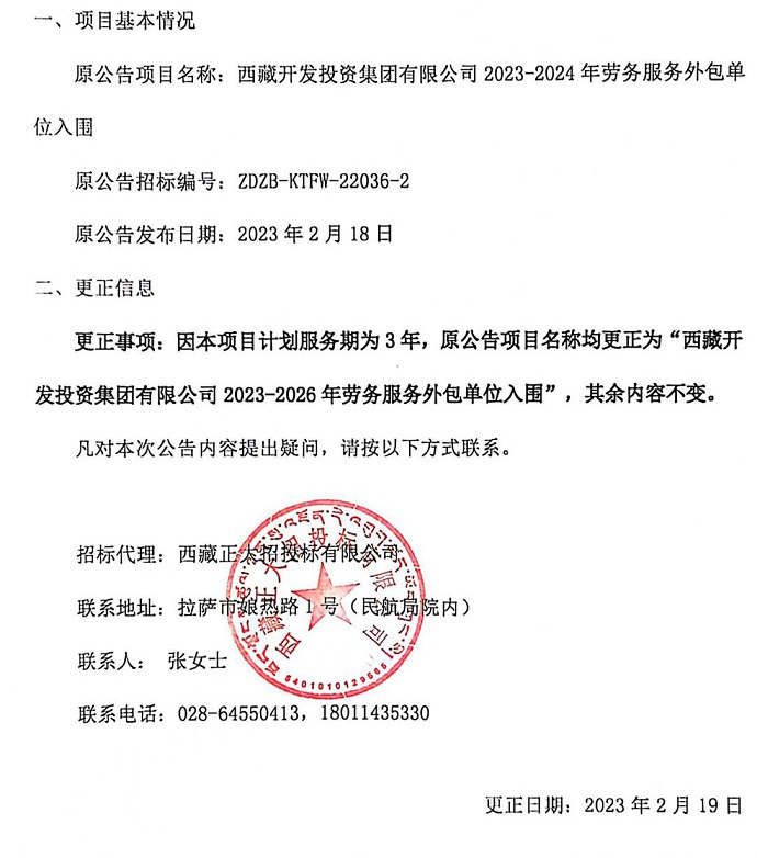 勞務(wù)服務(wù)外包單位入圍更正公告