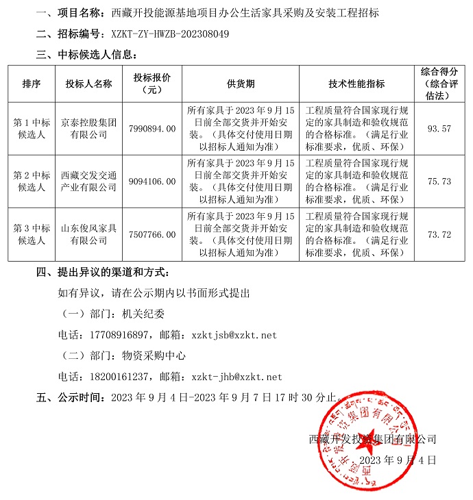 中標候選人公示